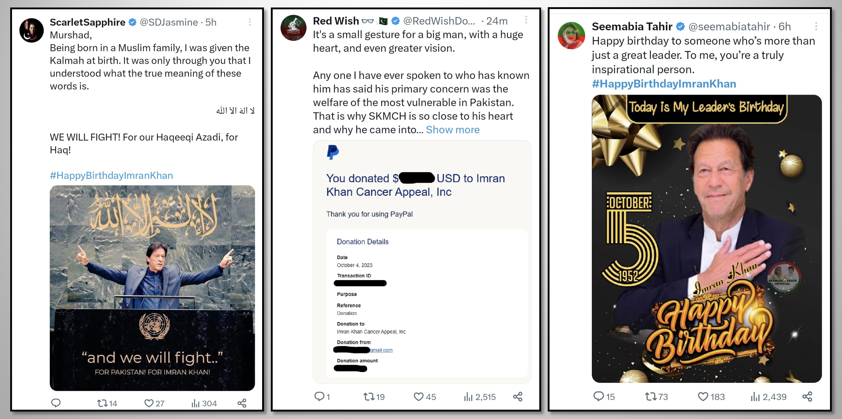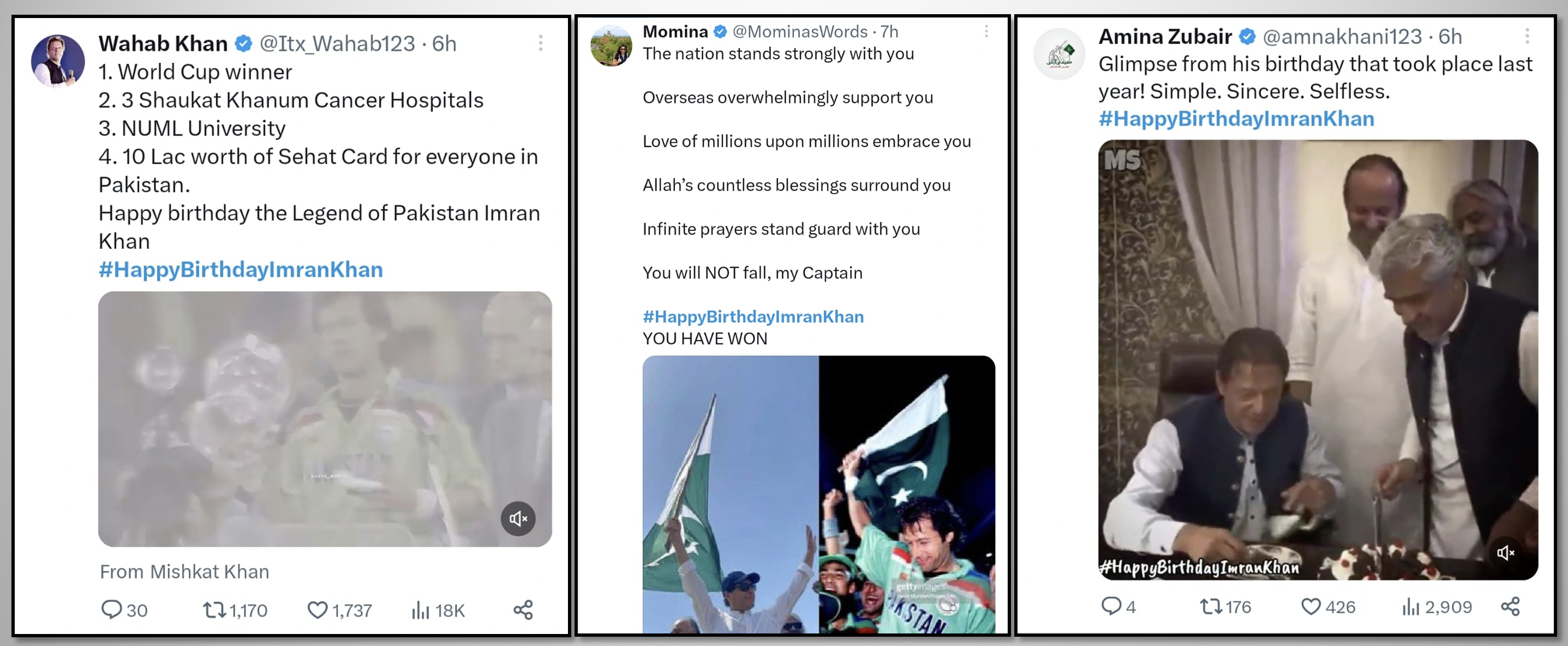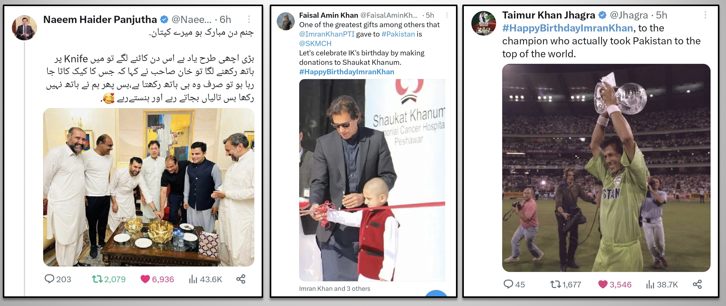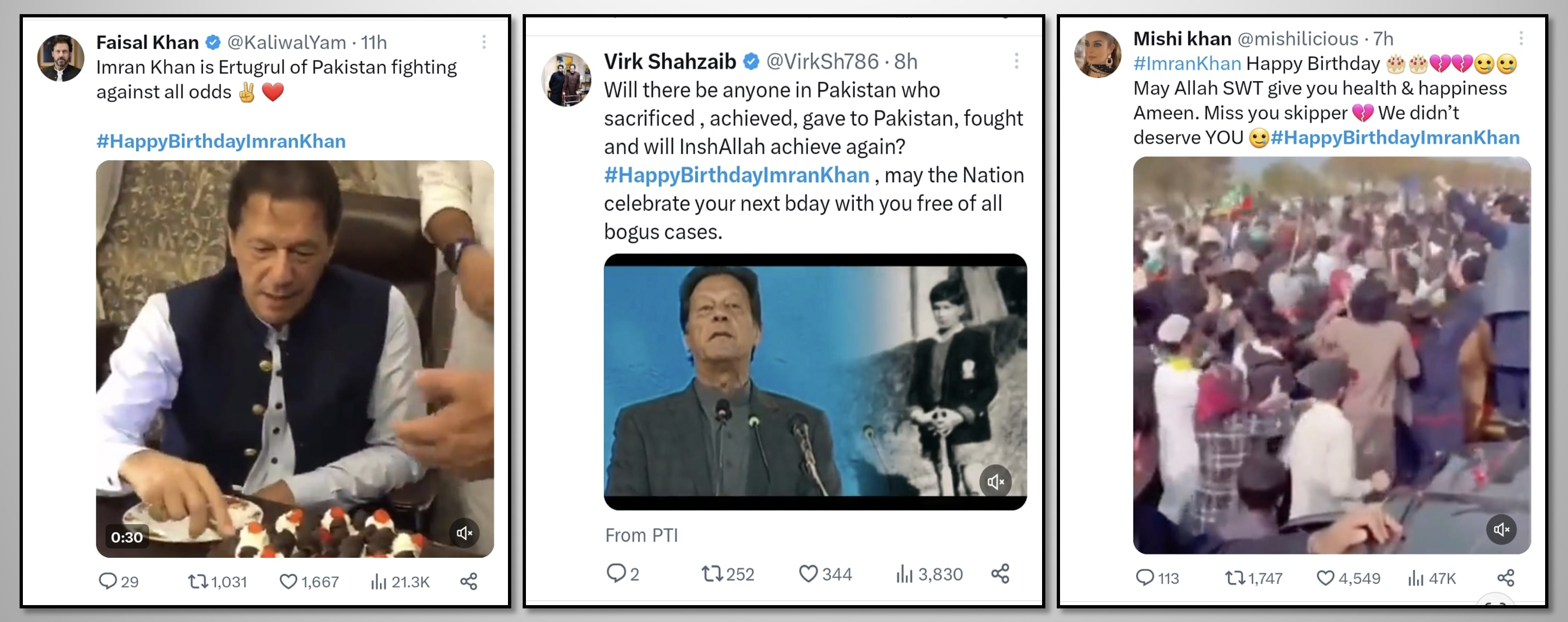 While the most popular leader of Pakistan, loved and respected by millions, is illegally imprisoned in inhumane conditions as a result of political victimization, the nation pays tribute to this great leader through social media. The hashtag #HappyBirthdayImranKhan becomes a top trend in many countries around the world and reaches the 2nd spot in worldwide trends. Former PM Imran Khan received heartfelt messages full of love, respect, and prayers for his health, long life, and immediate release. Let's take a look at some of the tweets by people from different walks of life.