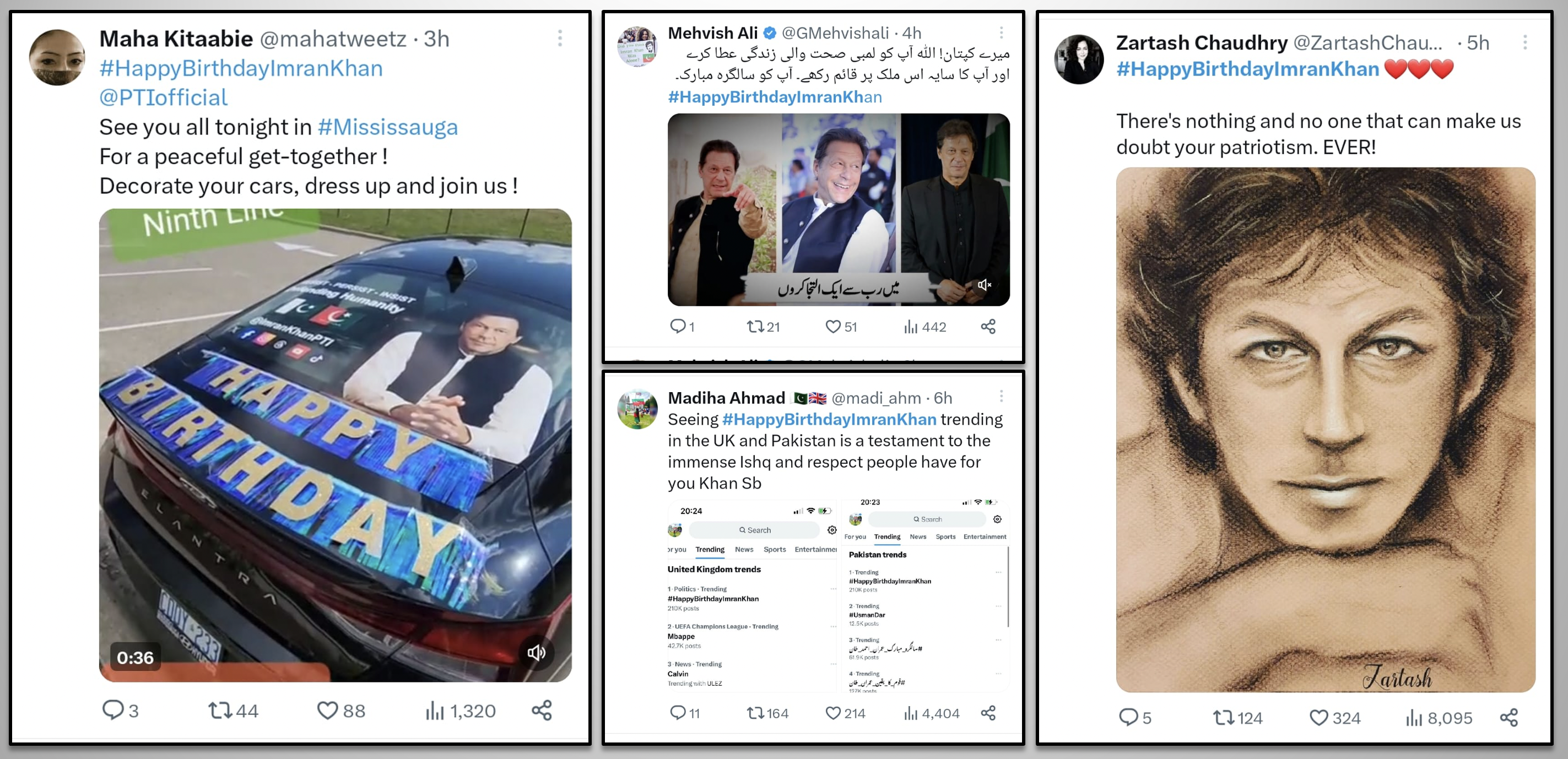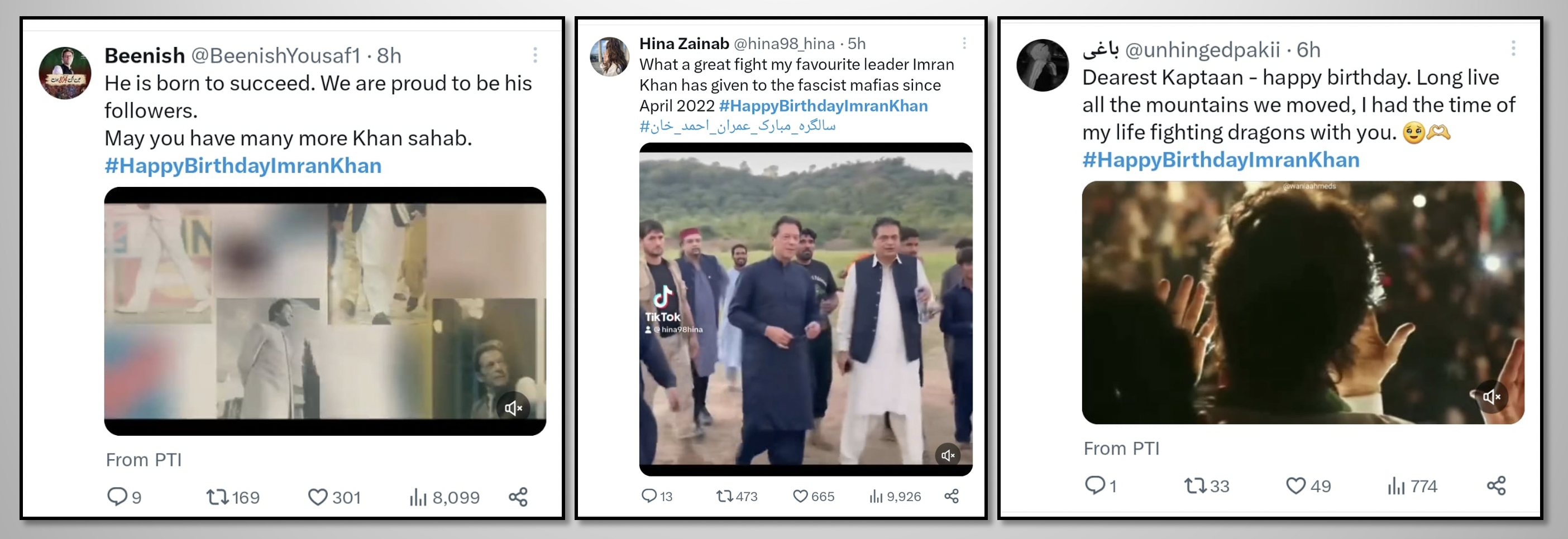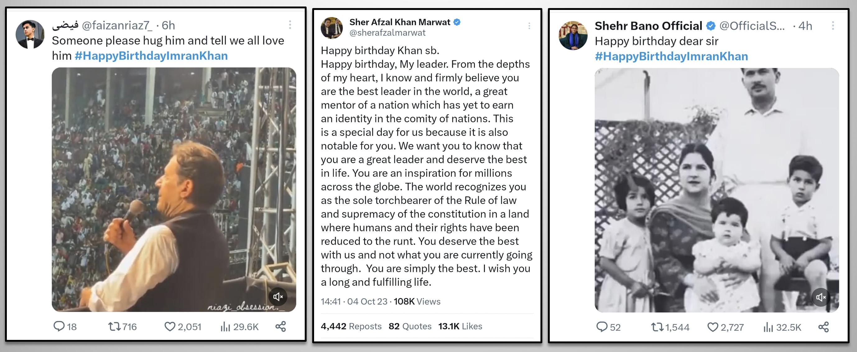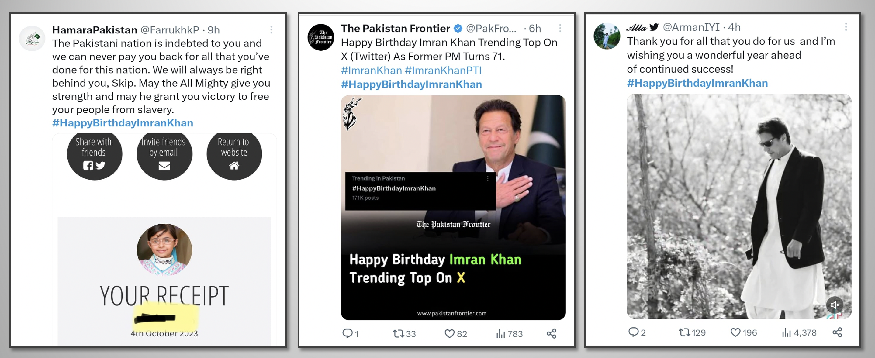 While the most popular leader of Pakistan, loved and respected by millions, is illegally imprisoned in inhumane conditions as a result of political victimization, the nation pays tribute to this great leader through social media. The hashtag #HappyBirthdayImranKhan becomes a top trend in many countries around the world and reaches the 2nd spot in worldwide trends. Former PM Imran Khan received heartfelt messages full of love, respect, and prayers for his health, long life, and immediate release. Let's take a look at some of the tweets by people from different walks of life.